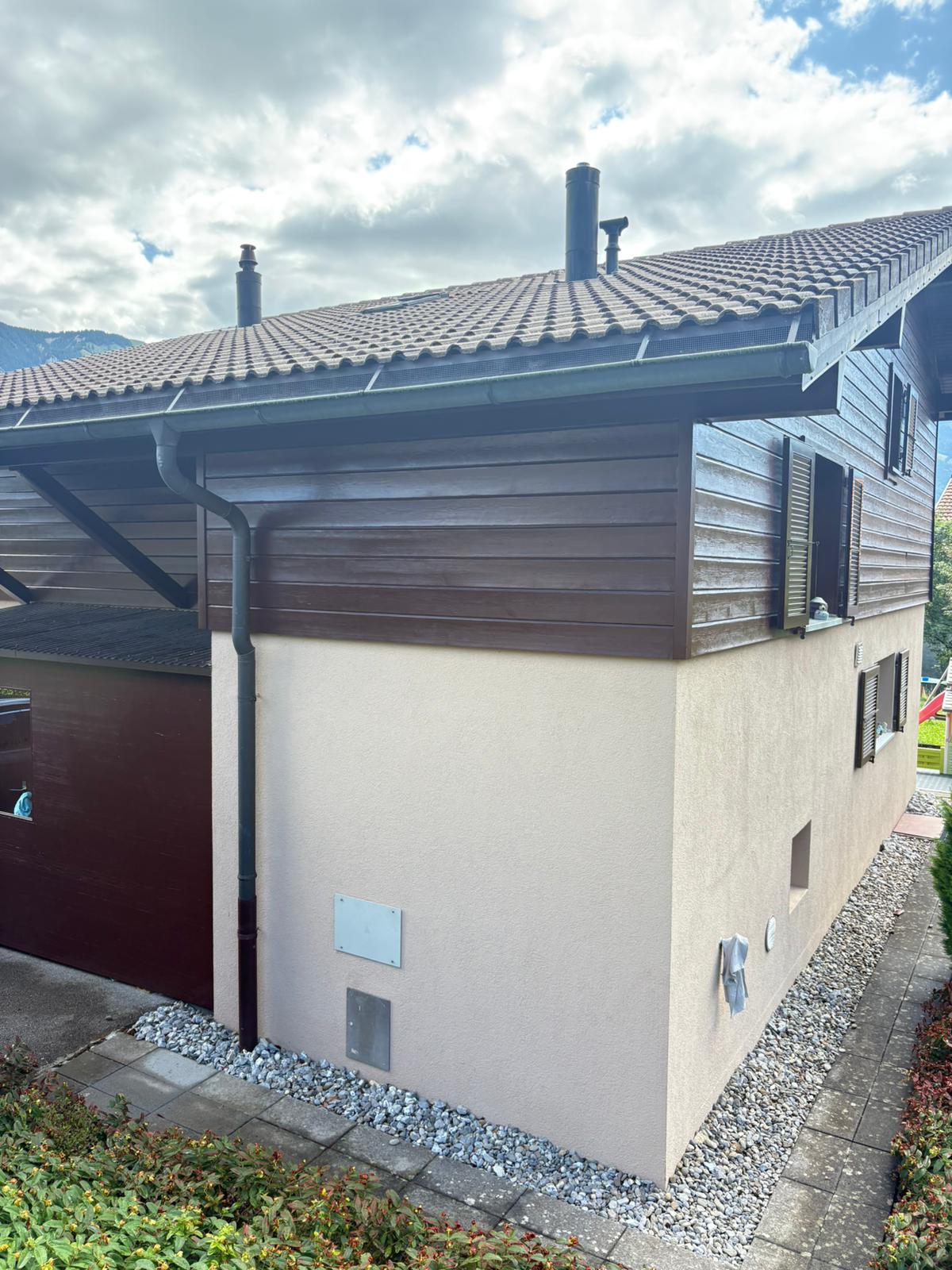 Entre le mur de la maison et la façade, une couche isolante supplémentaire apporte une bonne isolation thermique.